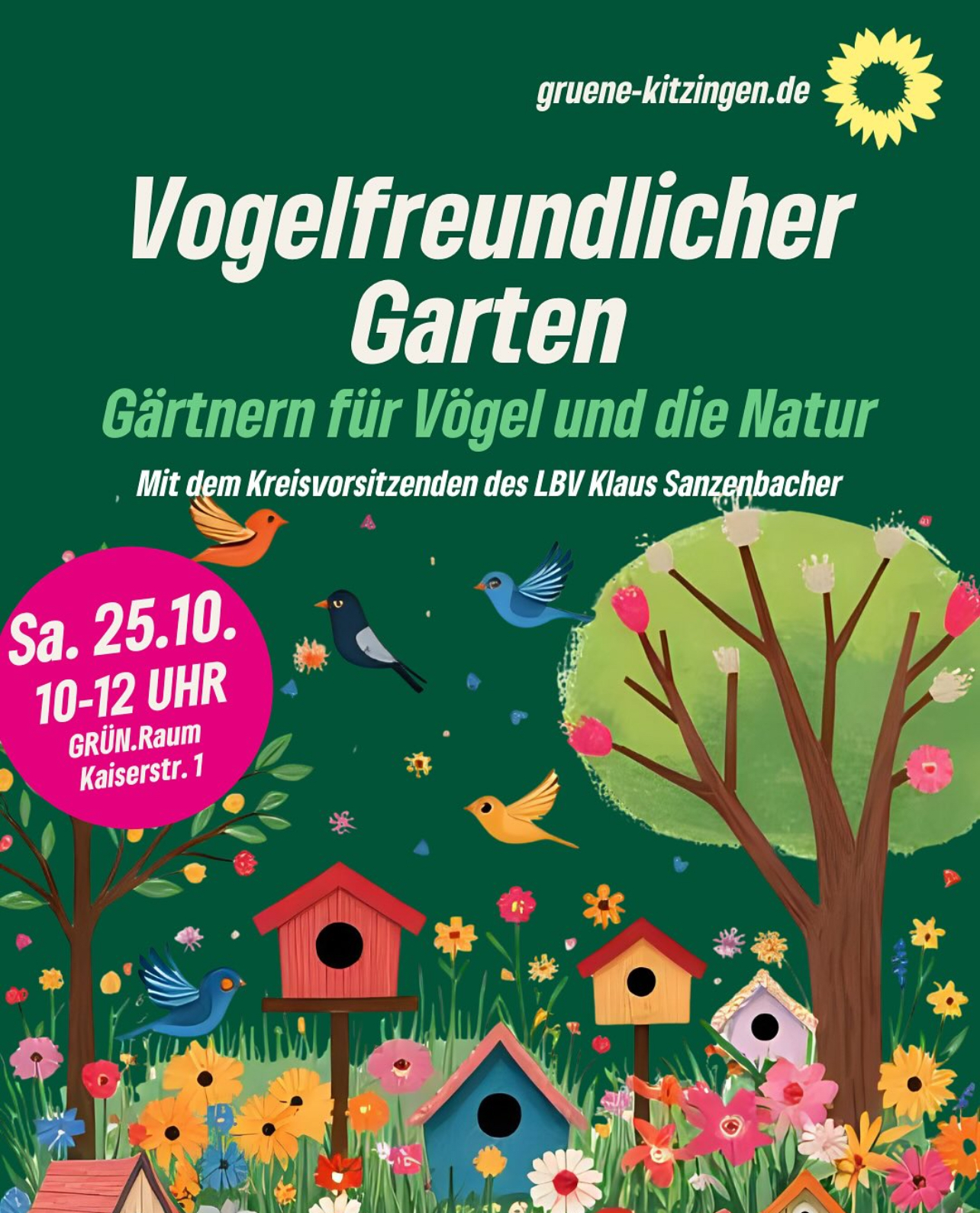 Samstag, 25. Oktober von 10-12 Uhr: Klaus Sanzenbacher, Kreisgruppenvorsitzender des Landesbundes für Vogelschutz, berät Bürger*innen zum „Vogelfreundlichen Garten“.