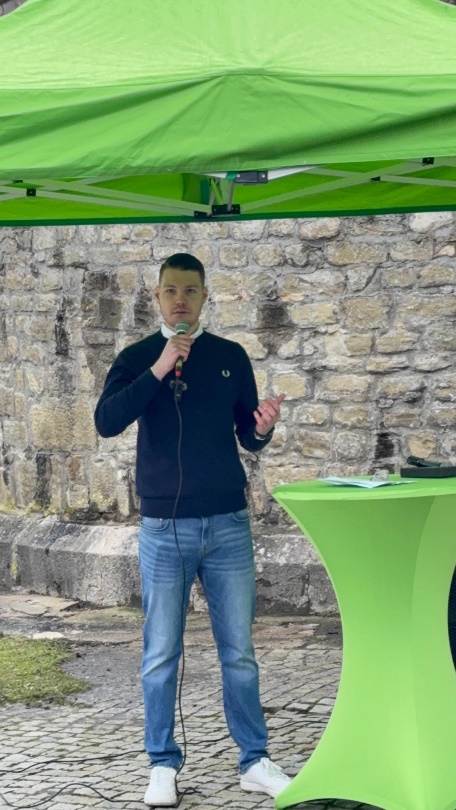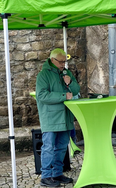 Jan Schneider als Spitzenkandidat für die Kreistagswahl von BÜNDNIS 90/DIE GRÜNEN setzte in seiner Rede als Schwerpunkt im Kreistag das Thema Zukunftspolitik, die über die nächste Legislaturperiode hinaus wirken müsse. Konkret stehe er für den Ausbau des ÖPNV, wohnortnahe gesundheitliche Versorgung, Hochwasserschutz und Bleibeperspektiven für junge Familien sowie Unterstützung der regional verwurzelten Wirtschaft. Wesentlich für ihn als jungen Menschen seien darüber hinaus Investitionen in Jugend und Bildung.